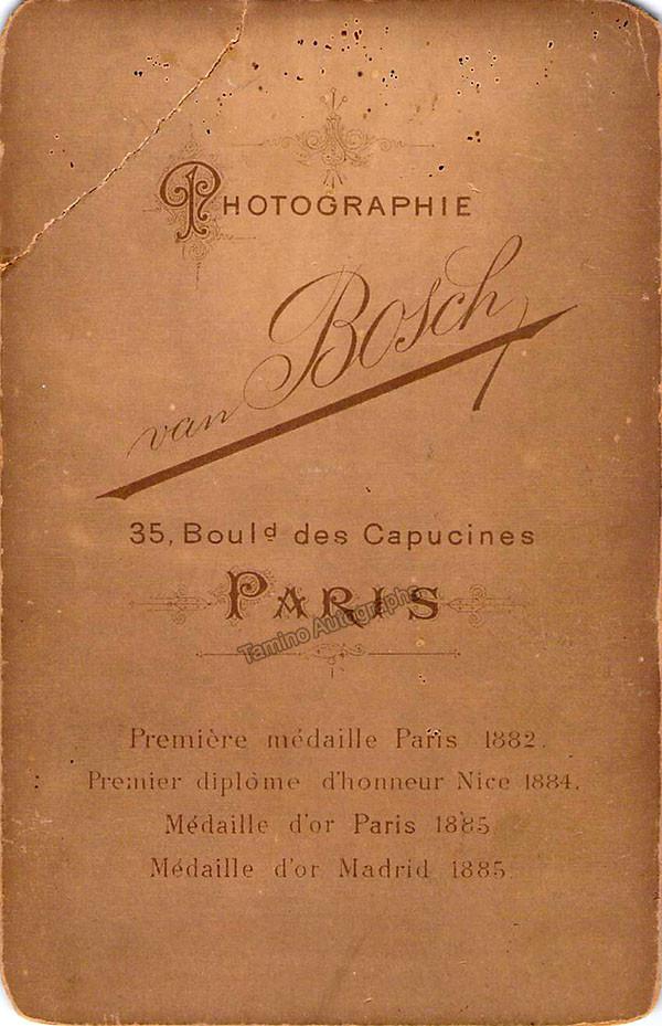 Australian soprano (1861-1931), signed cabinet photo, shown as herself. Inscribed. Photo by Van Bosch, Paris. Size is 4.25 x 6.5 inches. There is a repaired crack on the upper right corner, otherwise in very good condition.