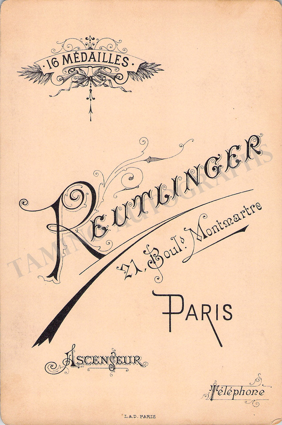 Beautiful vintage cabinet photograph by Falk (New York) signed by her, shown as Juliette in Gounod's opera 'Romeo et Juliette' dated 1895. Size is 4.25 x 6.6 inches, mounting traces, in very good condition.