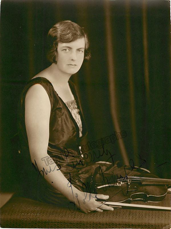 English violinist (1893-1976), who was most active in the first part of the 20'th century. Signed photo, shown as herself. Blind stamp of photographer Claude Harris, London. Size is 5.75 x 7.75 inches.