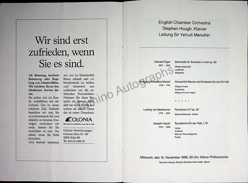 Menuhin, Yehudi - Signed Program Cologne 1989