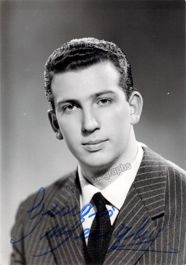 Signed photograph, shown as Rodolfo in Puccini's La Boheme at La Scala, Milan, inscribed. Size is 4 x 5.8 inches, in very good condition.