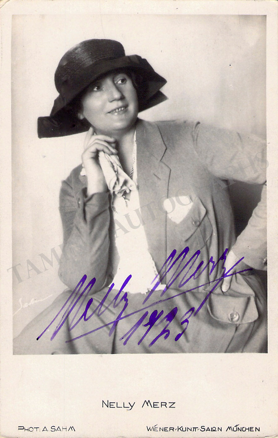 German soprano (1887-1968), signed postcard photograph, shown as herself, dated in 1923. Photo by A. Sahm, Munich. Size is 3.25 x 5.25 inches, several small creases, otherwise in excellent condition.