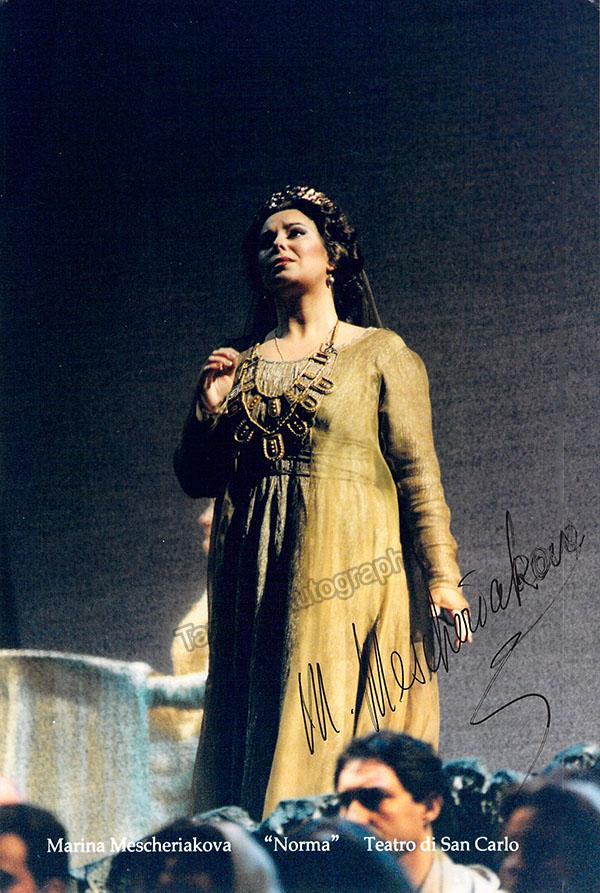 Russian soprano (b. 1964), signed photo, shown in title role of Bellini's Norma. Size is 5 x 7.5 inches, in excellent condition.