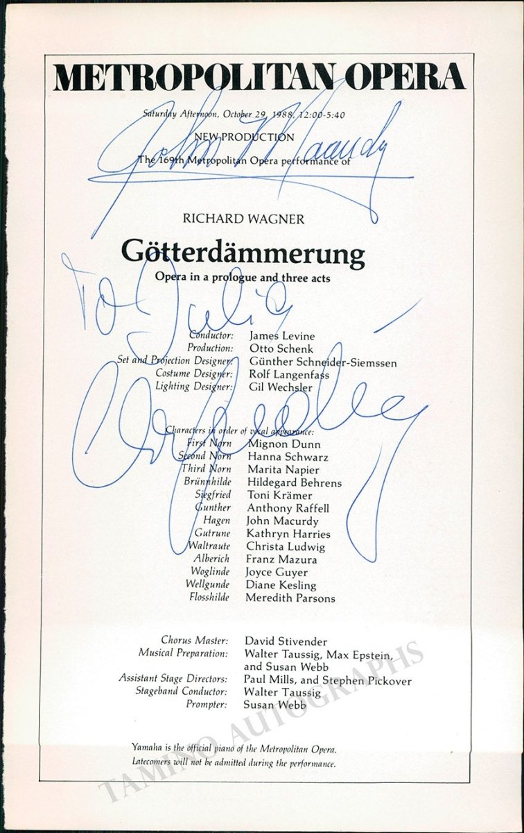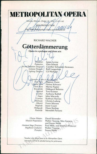 Cast page from a performance of Wagner's Götterdämmerung in 1988 signed by the two above mentioned singers.