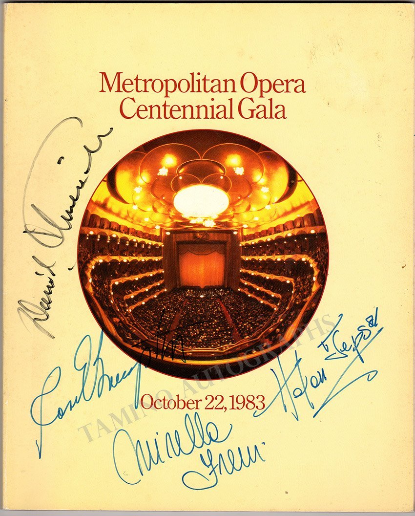 Program signed by many artists including Bidu Sayao, Cesare Valleti, Mirella Freni, Ferruccio Tagliavin, Erna Berger, Rose Bampton, Jarmilla Novotna, Elisabeth Söderstrom, Robert Merrill, Lucine Amara, Frederica von Stade and others
