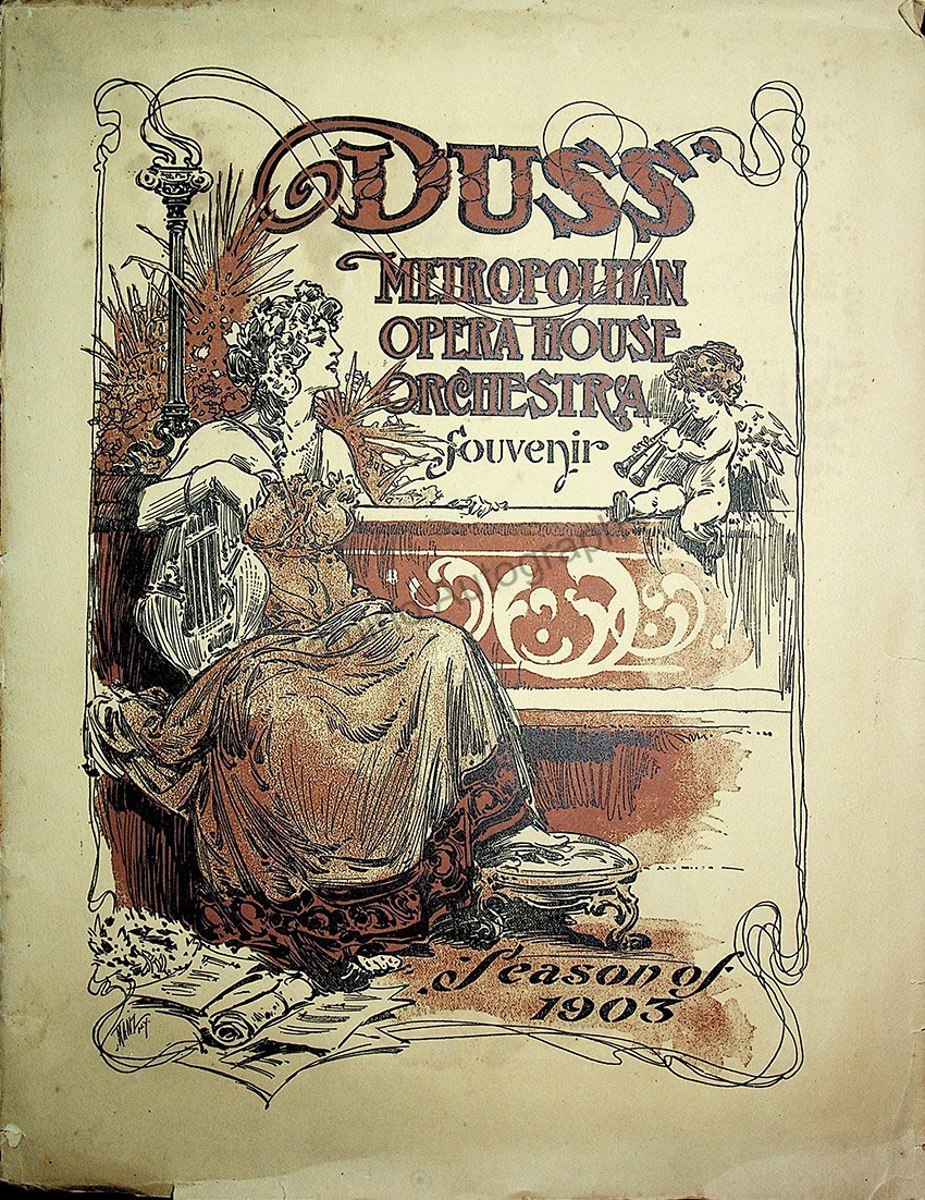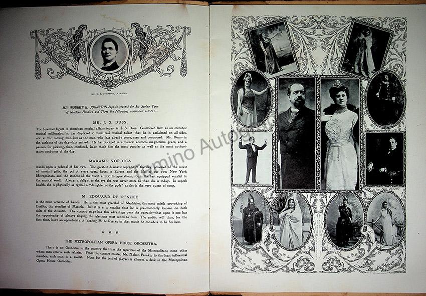 Full program with all pages and covers, tour of the Metropolitan Opera company, New York, with director/impresario J.S. Duss in 1903, with some of the star singers from the company and the orchestra.