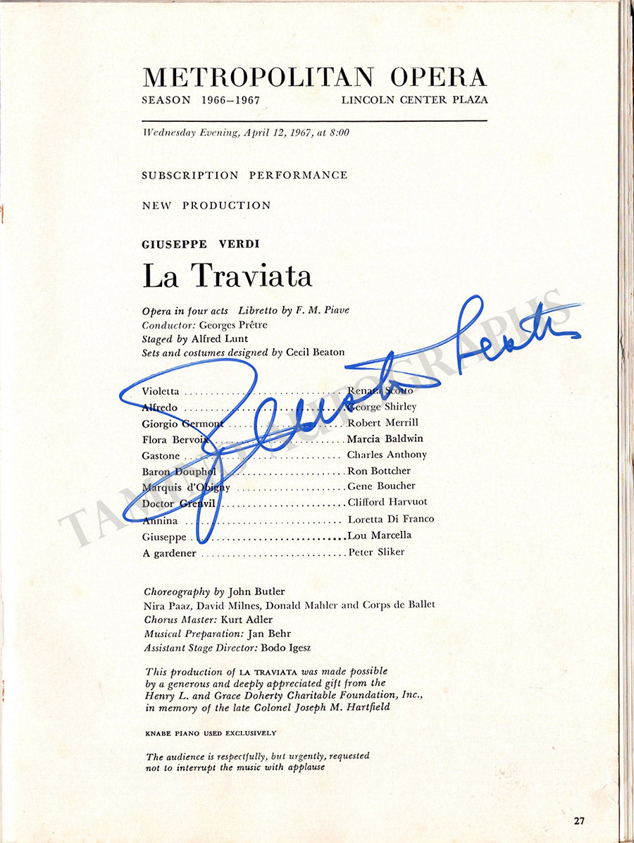 Metropolitan Opera - Signed Opera Programs 1959-1969 (Various Autographs)