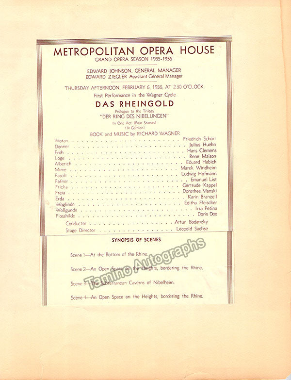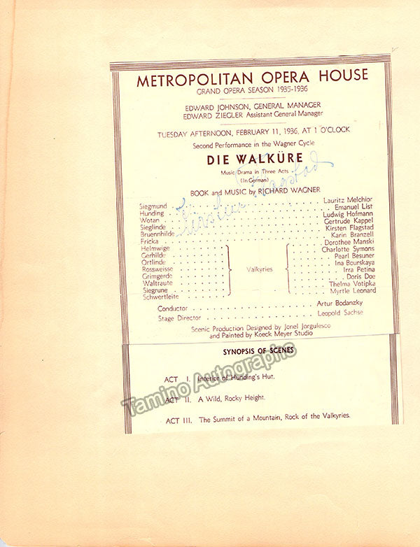 On verso there is an unsigned clip for a performance of Das Rheingold on February 6, 1936.