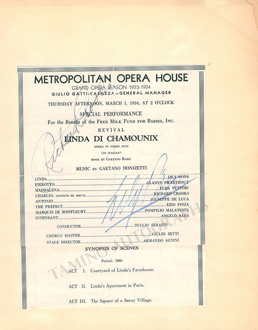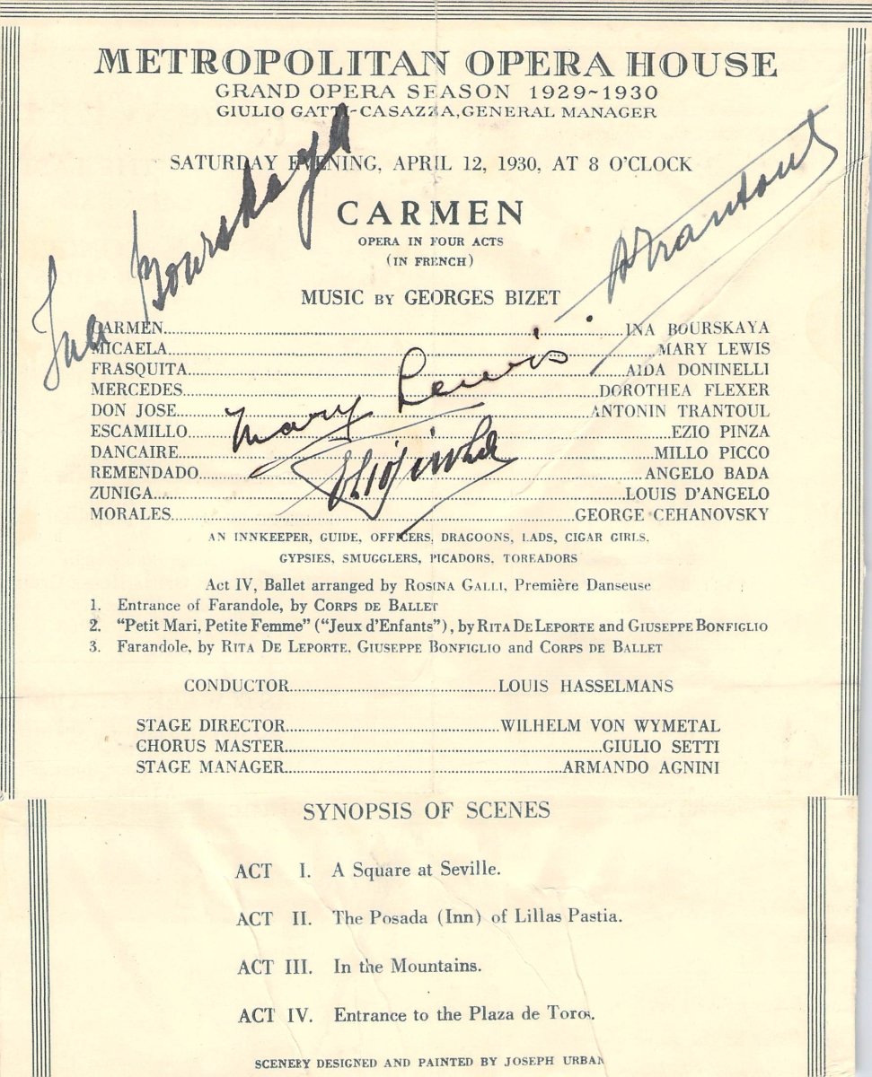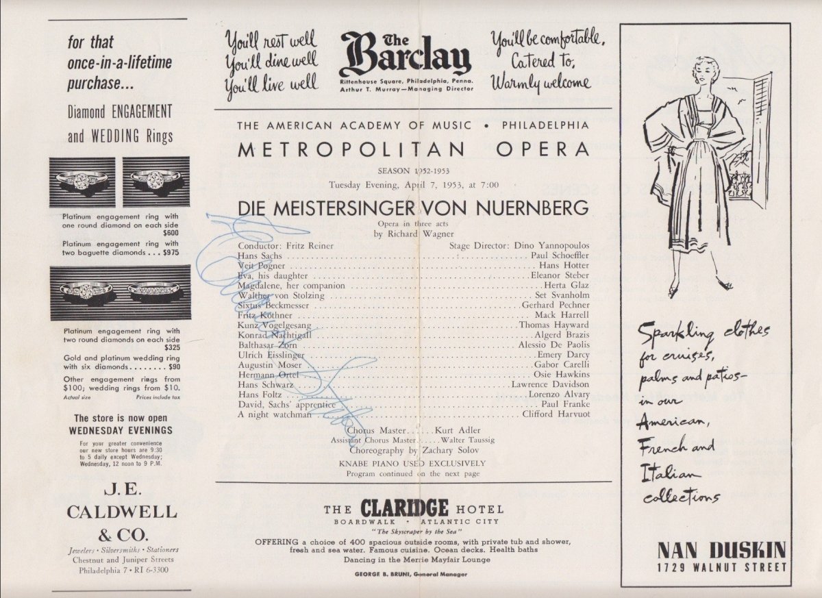 Metropolitan Opera - Signed Program Clips 1909-1963 (Various Autographs)