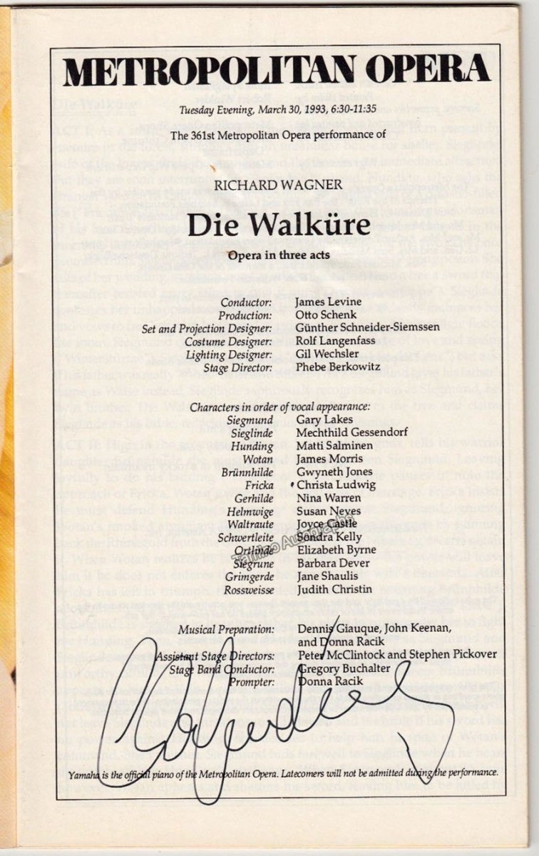 Metropolitan Opera - Signed Opera Programs 1990-1999 (Various Autographs I)
