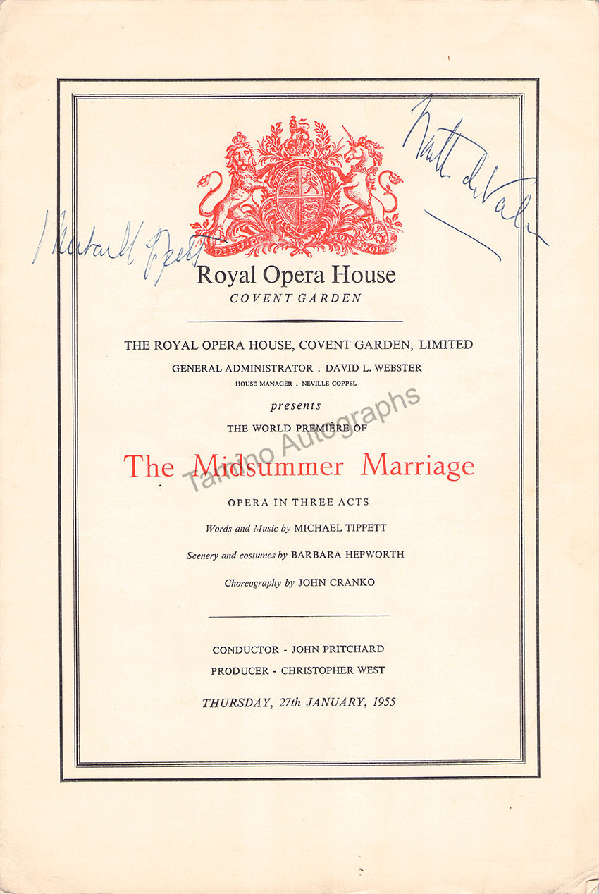 Michael Tippett Autograph Program Premier Midsummer Marriage