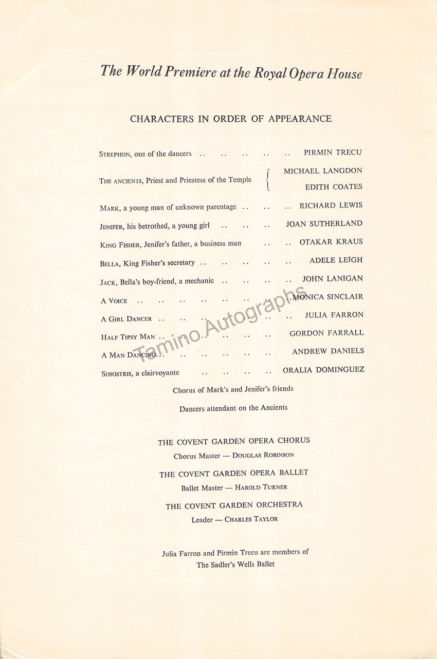 Tippett, Michael - Signed Program World Premier The Midsummer Marriage 1955 Tippett, Michael - Signed Program World Premier The Midsummer Marriage 1955
