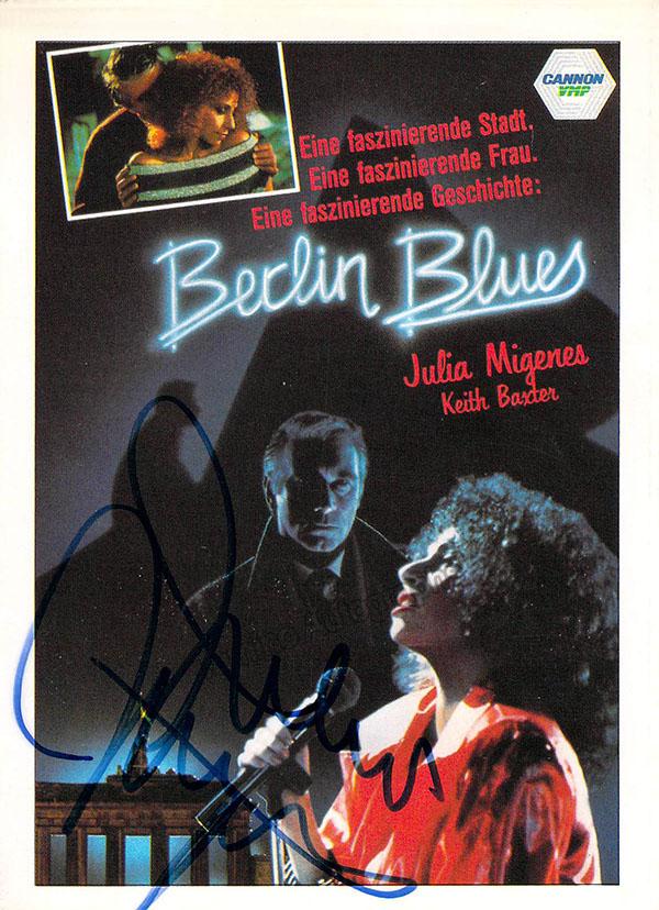 Signed card promoting a videocassette entitled 'Berlin Blues'. Size is 4 x 5.5 inches, in excellent condition.