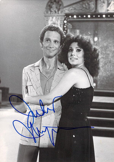 Signed photo, shown as herself with famed American actor, singer, dancer, and director Joel Grey. Size is 5 x 7 inches, in excellent condition.
