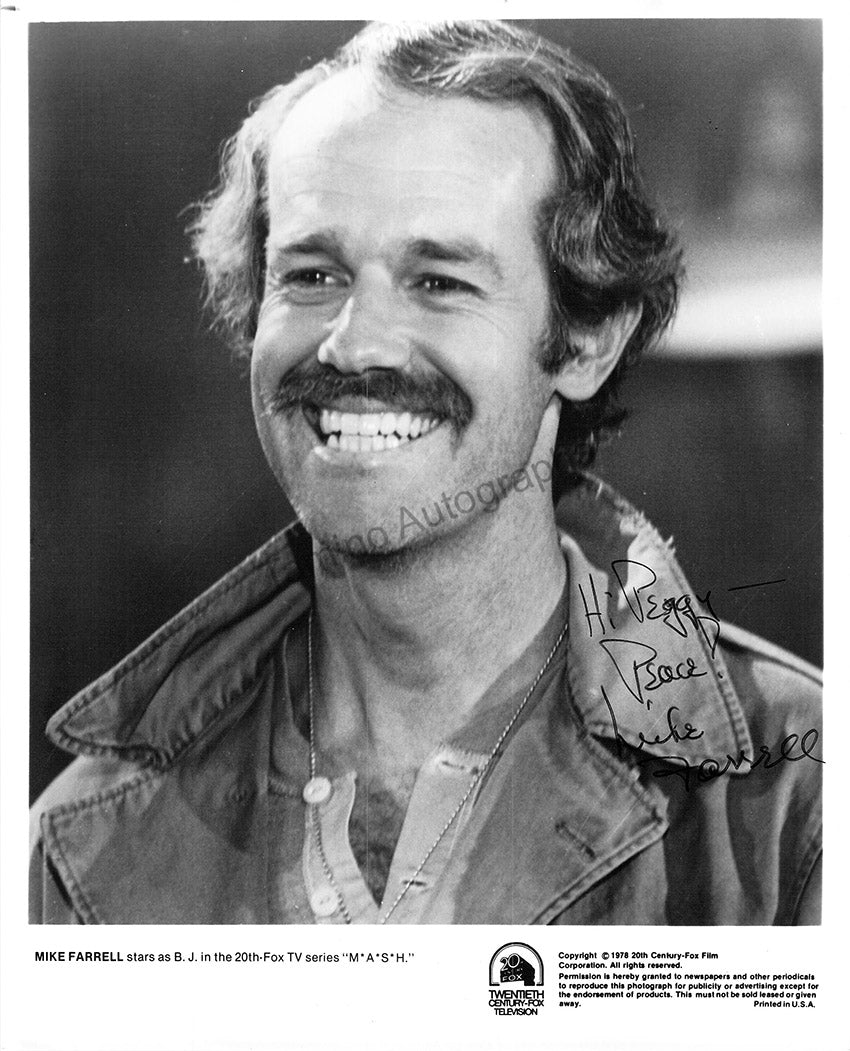 Fantastic black-and-white promo photograph signed and inscribed by him with a short sentiment, shown in the TV series "M.A.S.H." (1975-1983).  Size is 7.9 x 8.75 inches, in excellent condition.