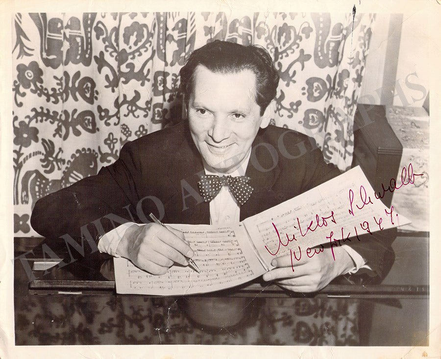Fine black-and-white photograph signed by him in New York, 1947, shown with a score. Size is 10 x 8.1 inches, some creases, in fair condition.