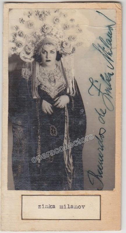 Croatian-born soprano (1906-1989), one of the greatest interpreters of Verdi at the Met Opera. Signed photo, 3 x 5 inches, mounted on cardboard card (sized 3.25 x 6 inches), shown as Turandot in the opera of the same name by Puccini