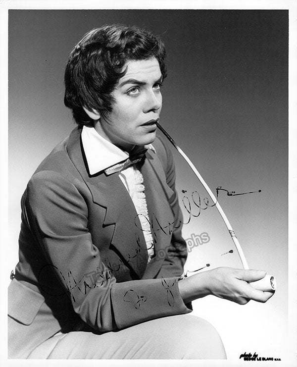 Signed photograph, shown as Nicklausse in Offenbach's Les Contes D'Hoffmann. Stamped on verso by photographer Sedge LeBlang, Metropolitan Opera, New York. Size is 8 x 10 inches, in excellent condition.