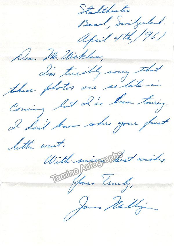 Canadian baritone (1928-1961), lot of 3 signed photos, 1 autograph note signed, and 1 signed card. Shown as Escamillo in Carmen and in unknown role (both 4 x 5.75 inches and stamped on verso by photographer Jacques Weiss, Basel), and as himself, 3.25 x 5.25 inches. Autograph note signed in English, dated 1961, 1 folded page. All in excellent condition. Sold only as lot.
