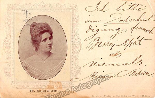 American soprano (1874-1934), signed photo postcard, showing a small portrait of her, as herself. Size is 5.5 x 3.5 inches, in very good condition.