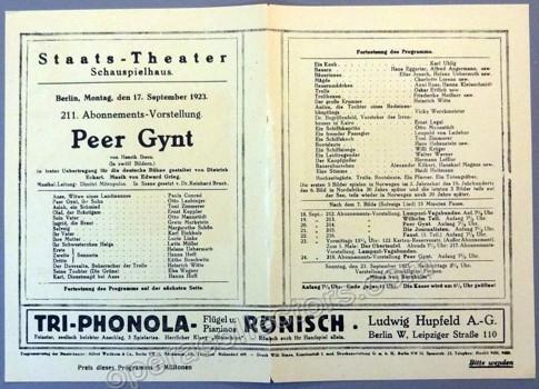 Dimitri Mitropoulos in Berlin, 17 September 1923. Peer Gynt by Edvard Grieg at the Schauspielhaus Berlin.