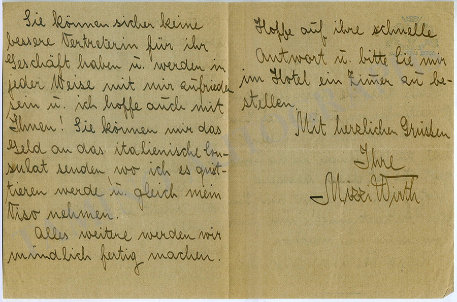 Wirth, Mizzi - Autograph Letter Signed 1919 Wirth, Mizzi - Autograph Letter Signed 1919