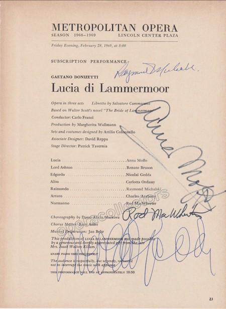 Lucia di Lammermoor, Met Opera, Feb. 28th 1969, signed cast page (not full program), 8 x 11 inches (20 x 27.5 cm)