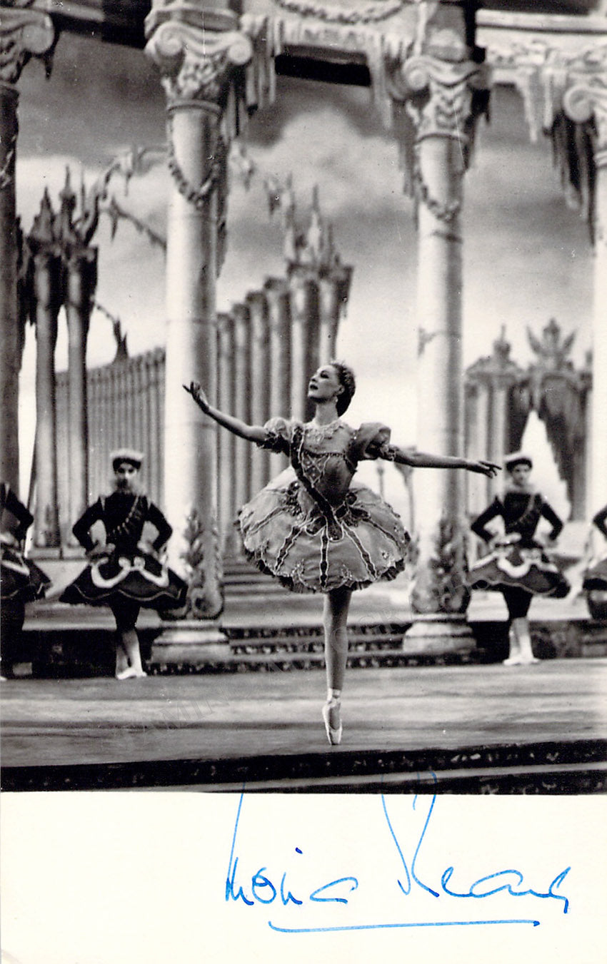 Gorgeous black-and-white photograph signed by her, shown in performance. Size is 3.3 x 5.3 inches, in excellent condition.