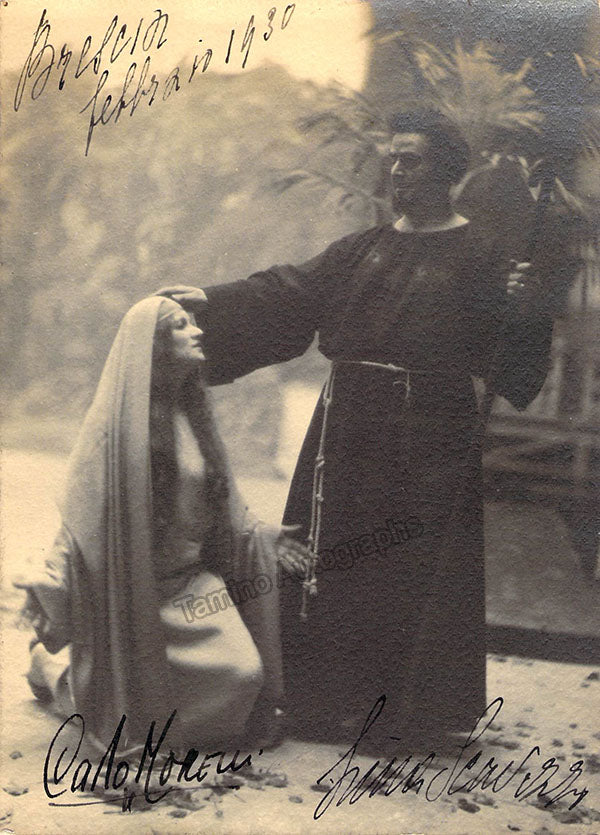 Chilean baritone (1897-1970) and Italian soprano (1898-?), double signed photograph, shown in roles in Massenet's Thais, dated in Brescia in 1930. Size is 5 x 7 inches, mounting traces on verso, otherwise in very good condition.