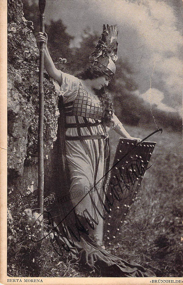 German soprano (1878-1952), signed vintage postcard photograph, shown as Brunnhilde in Wagner's Der Ring des Nibelungen.  Photo by F.R. Grainer photographers, Germany. Size is 3.5 x 5.5 inches, small crease in middle right of photo, otherwise in excellent condition.