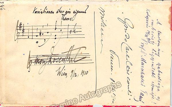 Rosenthal, Moriz - Autograph Music Quote Signed 1910 - Tamino Rosenthal, Moriz - Autograph Music Quote Signed 1910 - Tamino