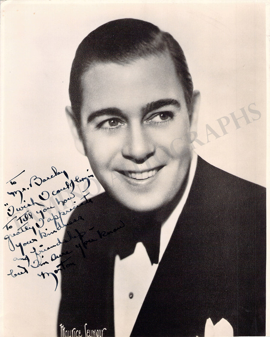 Fine black-and-white photograph signed and inscribed by him with a short sentiment. Size is 7.75 x 9.7 inches, in excellent condition.