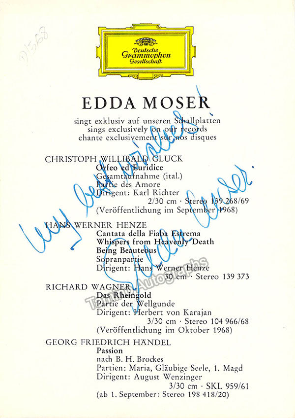Signed photograph, shown as herself. Bold handwriting and signature. Stamped on verso by Fayer photo studio, Vienna. Size is 5 x 7 inches, in very good condition.