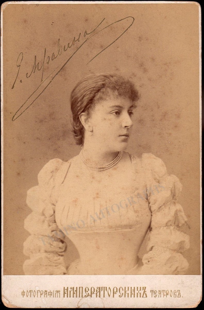 Russian lyric soprano (1864-1914), very famous in her time, signed cabinet photo from the Imperial Theater in St. Petersburg, 4.25 x 6.5 inches. Some damage on corners, in very good condition.