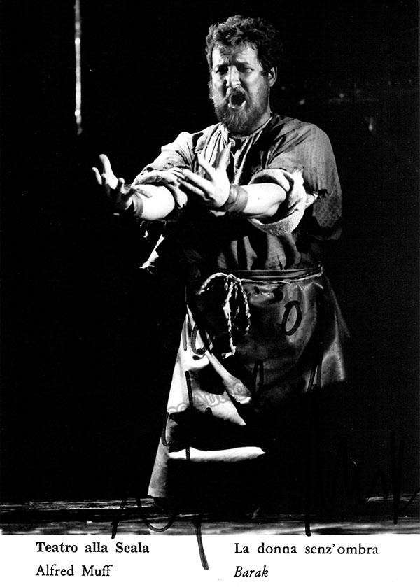 Swiss bass-baritone (b.1949), signed photo, shown as Barak in Richard Strauss's Die Frau ohne Schatten, inscribed. Photo by Lelli and Masotti, La Scala, Milan. Size 5 x 7 inches, in excellent condition.