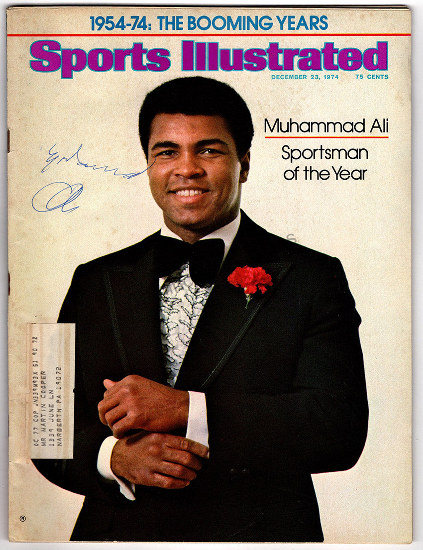 Sports Illustrated magazine issued on December 23rd, 1974, signed by the famous boxer on the front cover.