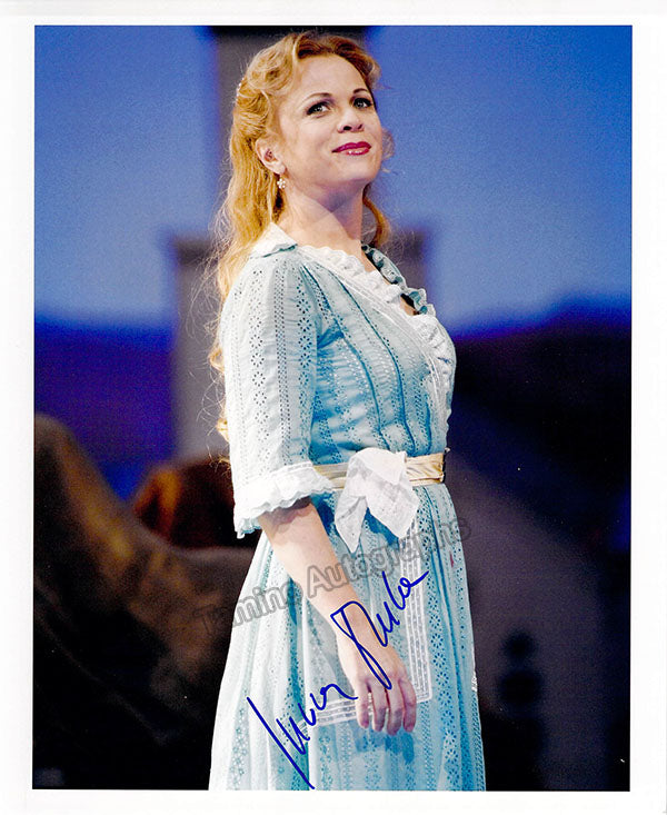 Albanian soprano (b. 1963), signed photograph, shown as Adina in Donizetti's L'Elisir D'Amore. Size is 8 x 9.75 inches, in excellent condition.