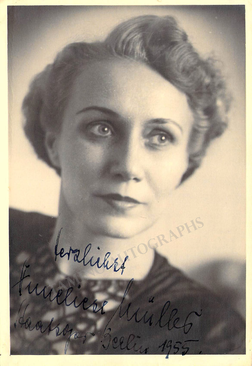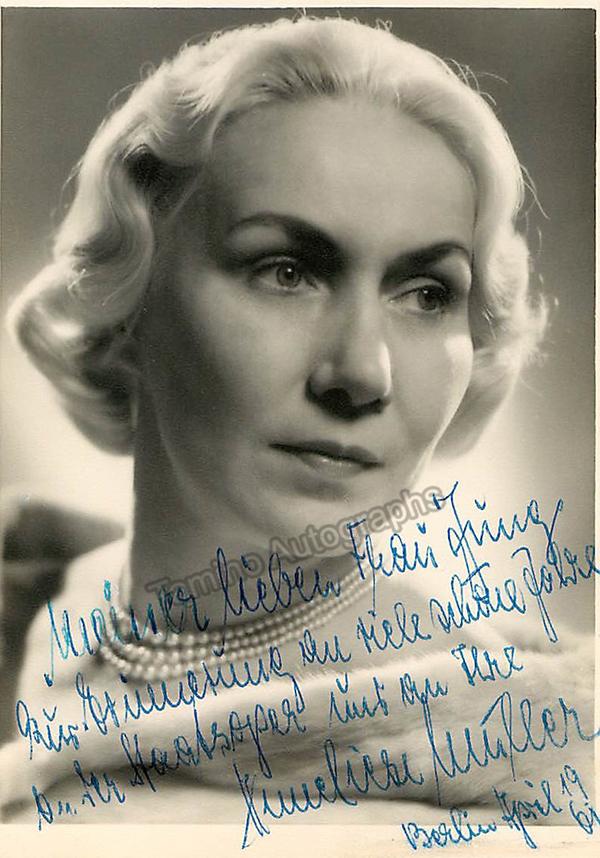 Signed photograph, shown as herself. Inscribed and dated in Berlin in1955. Stamped on verso by photographer Kreutzinger, Berlin. Size is 4 x 5.75 inches, some bends otherwise in good condition.