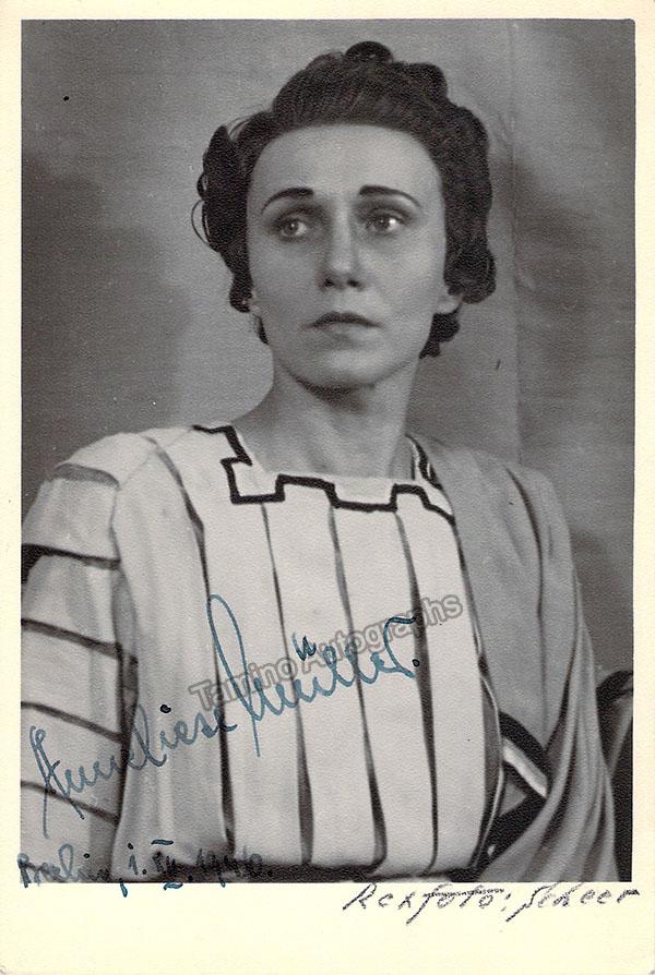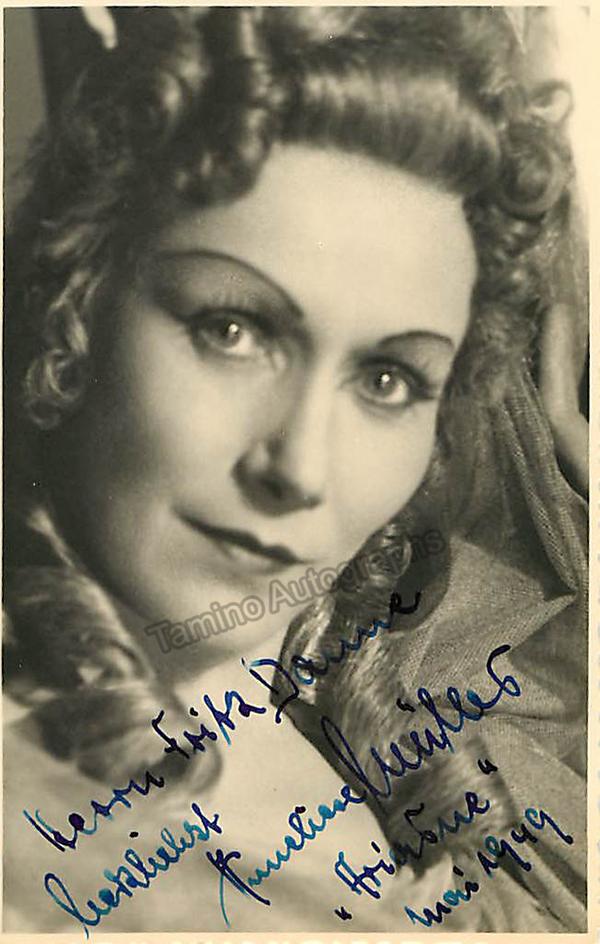 Signed photo postcard, shown in the title role of Strauss' Ariadne auf Naxos, dated in 1949. Size 3.25 x 5.25 inches. In excellent condition!