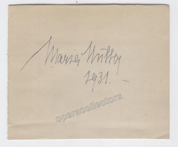 Bohemian soprano (1889-1958), signed Album Leaf with handwritten "Maria Muller 1931", 14.5 x 12 cm.