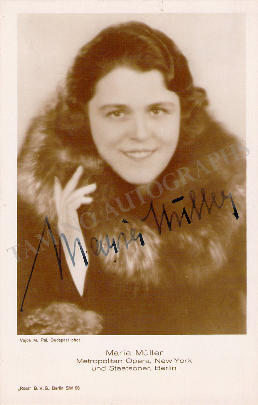 Signed photo postcard, shown in title role of Puccini's Suor Angelica. Photo by Suse Byk, Berlin. Size is 3.5 x 5.5 inches, in excellent condition.