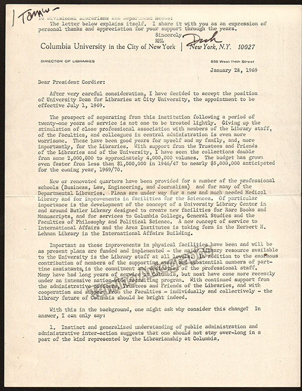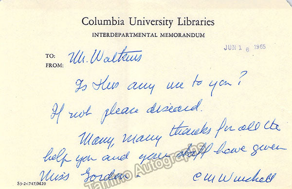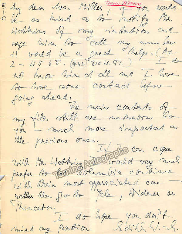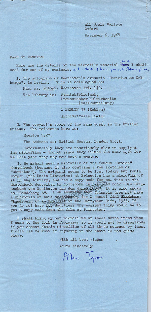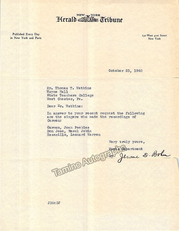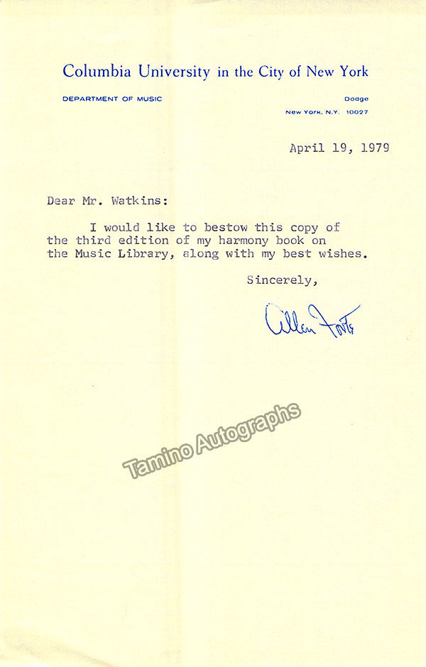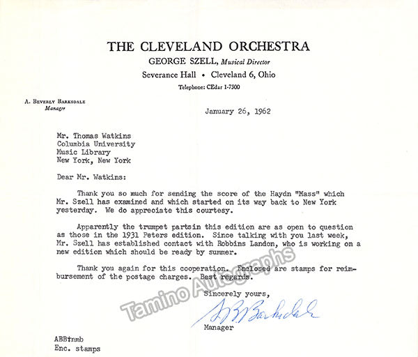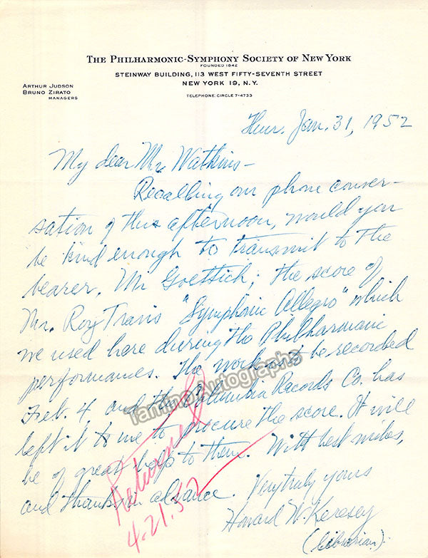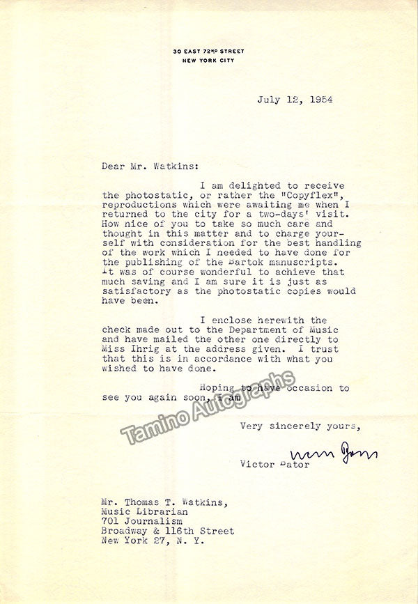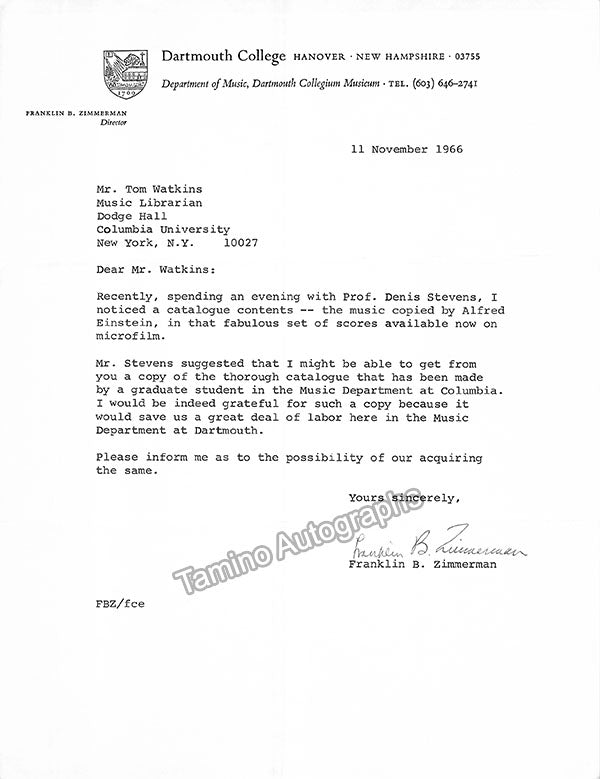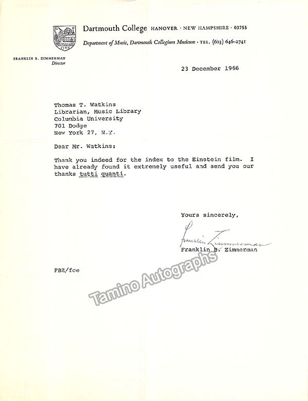 A large consisting of over 70 letters (handwritten and typed), a few clips, received and a few sent by Librarian Thomas T. Watkins (1918-1997), who was Music Librarian at Columbia University in New York for many years.