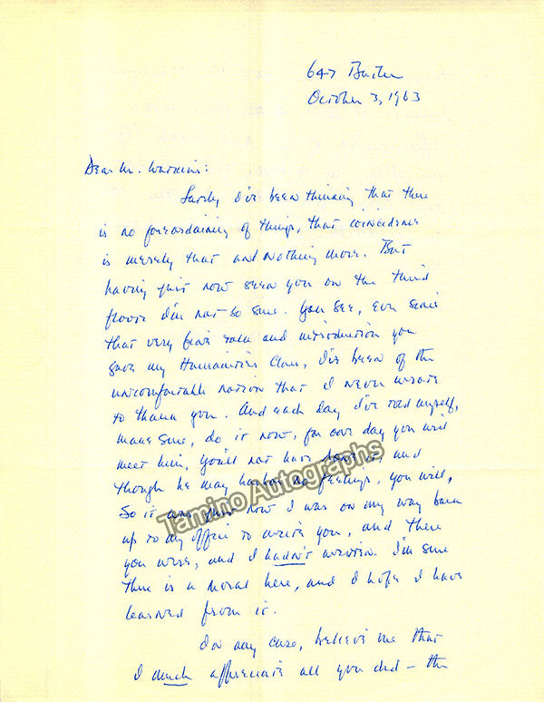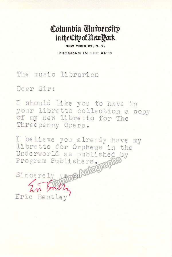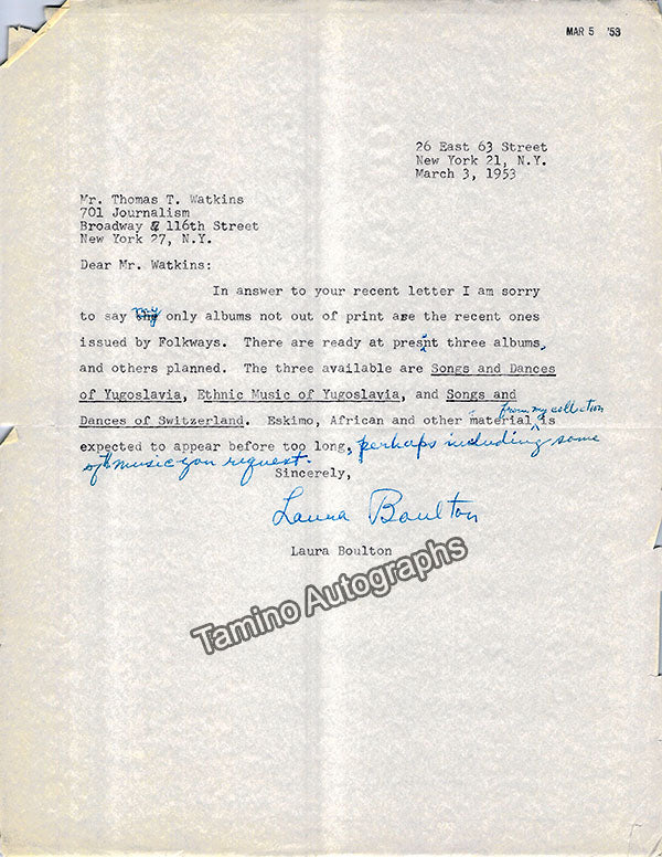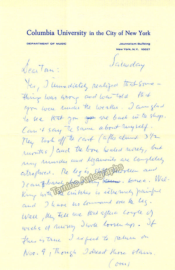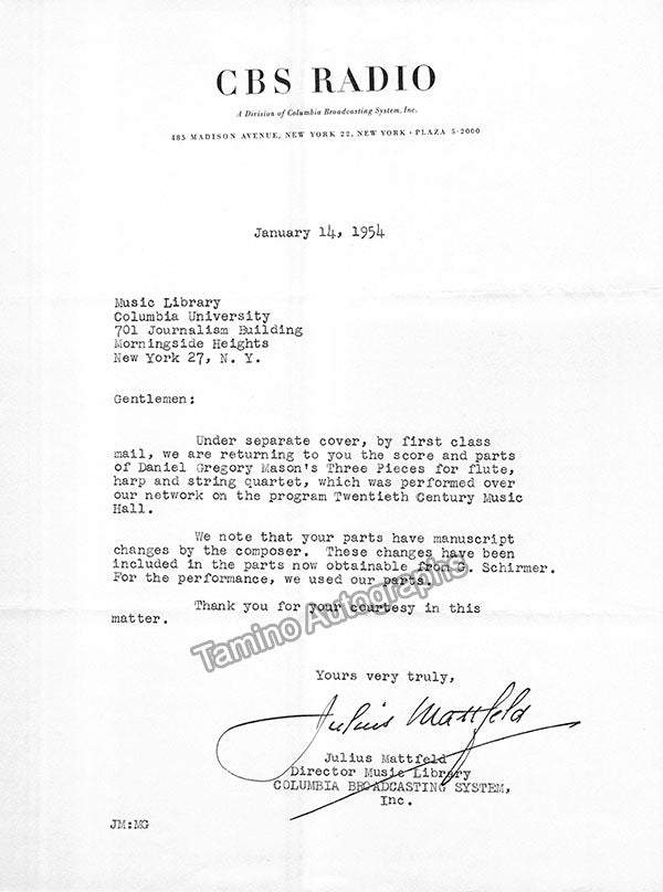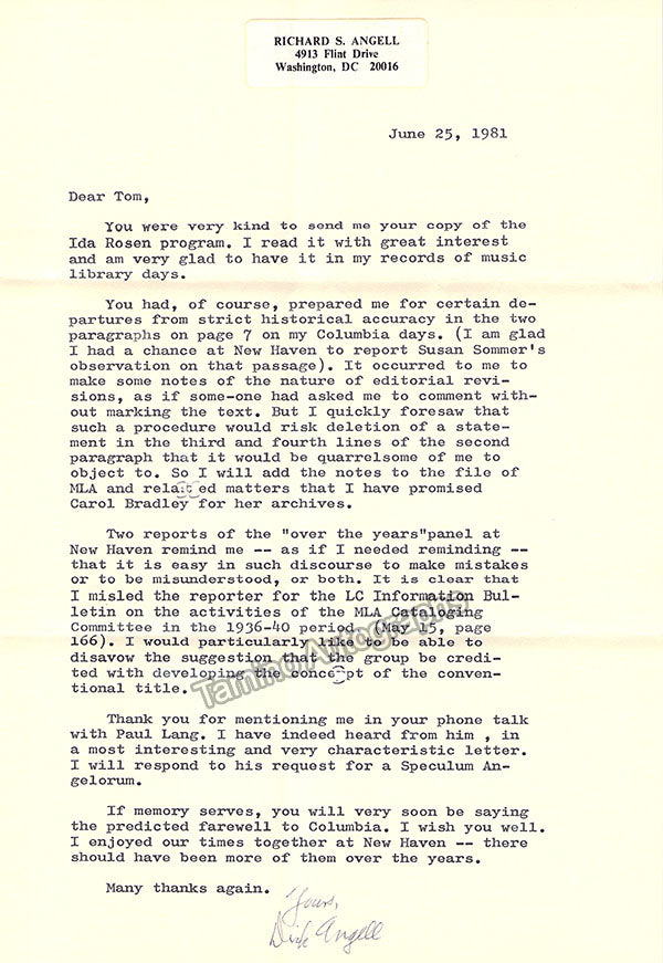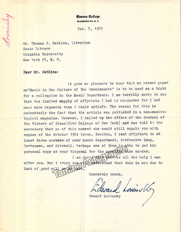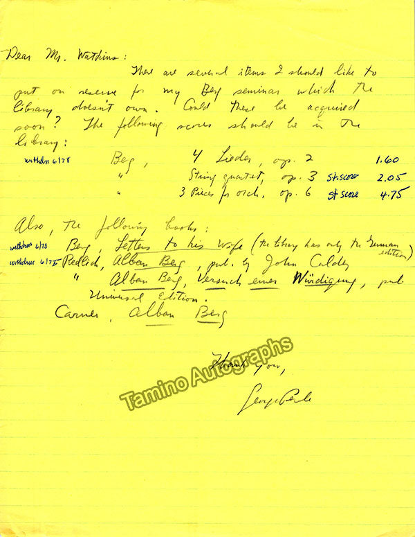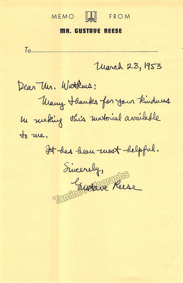 - Several letters (some handwritten, some typed, all signed as "Paul"), by musicologist and music critic Paul Henry Lang (1901-1991).