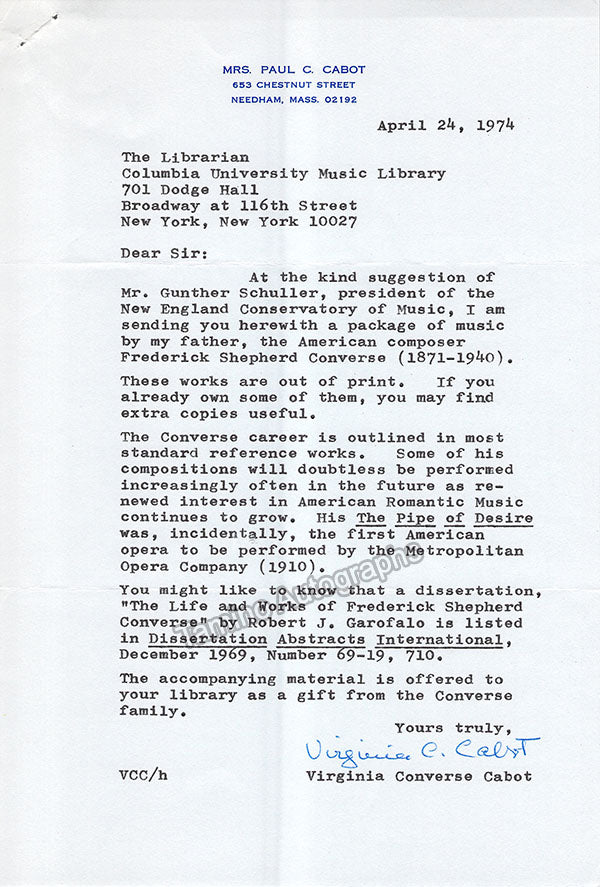 Musicologist - Composer - Librarian Large Autograph Letter Lot