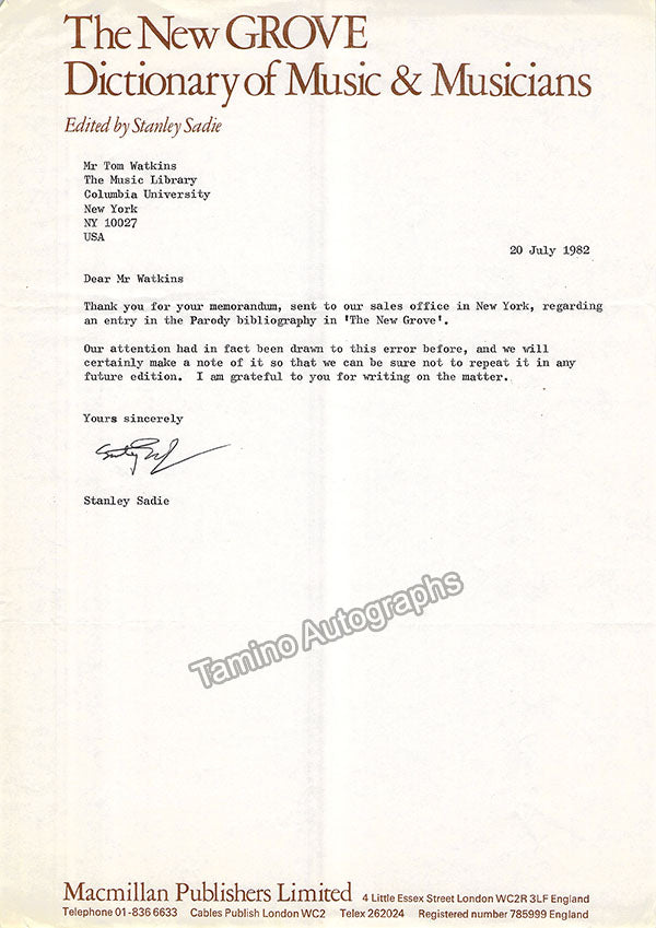 - music editor, critic and musicologist Stanley Sadie (1930-2005), who edited the famous The New Grove Dictionary of Music and Musicians in 20 volumes.