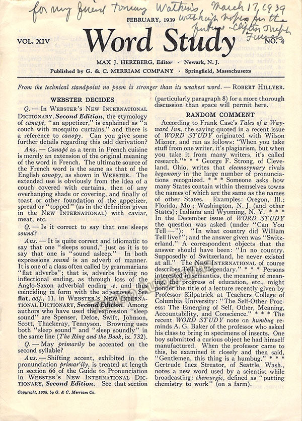 - authors Clifton Joseph Furness (1898-1946), Victor Bator (1891-1967) who curated Bela Bartok´s papers, Allen T. Hazen (1904-1977).