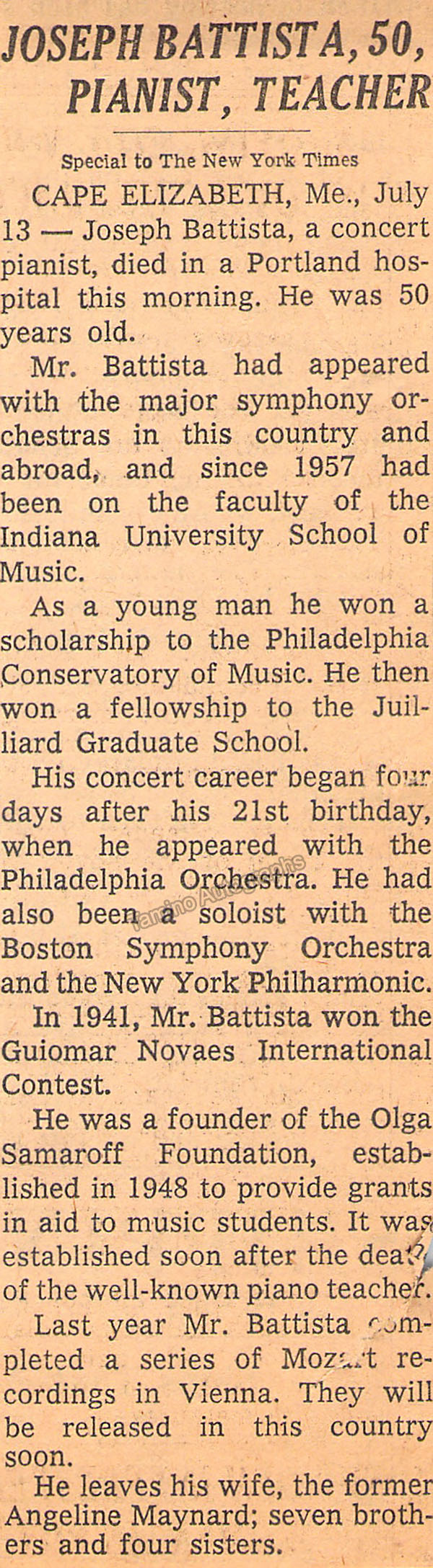 - composers Julius Mattfeld (1893-1968), George Perle (1915-2009), Norman Lockwood (1906-2002), composer, organist and teacher Seth Bingham (1882-1972)