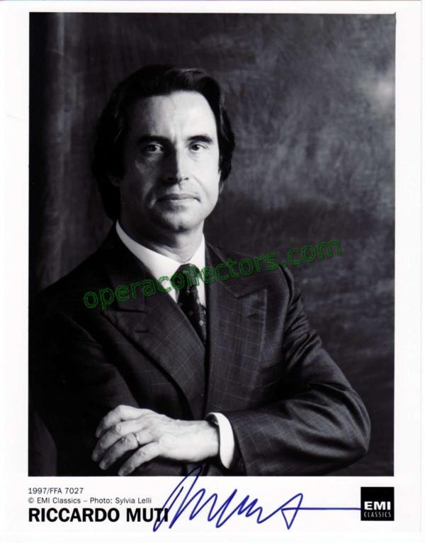 Italian conductor, known for his work as music director of La Scala opera house in Milan, and with the Philadelphia Orchestra. Gorgeous signed promo photo, 8x10 inches.