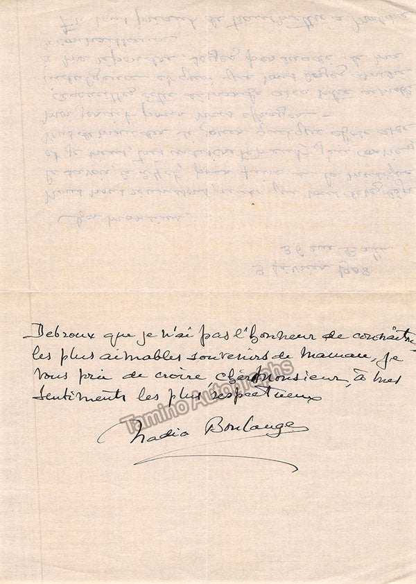 Boulanger, Nadia - Autograph Manuscripts (Various Options)