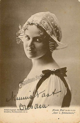 Signed photo postcard of the German soprano (1874-1956) shown in role in Lortzing's Czar und Zimmermann. Size 3.5 x 5.5 inches. In excellent condition!